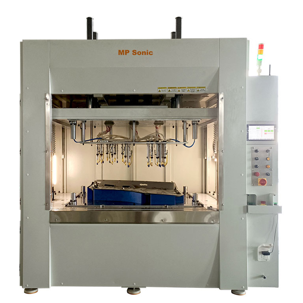 MP Sonic designed servo heat staking machine applied servo motor system to control the staking action and force pressure during operation. It is mostly applied for the riveting assembly of parts in big size, especially such as automotive door trim production.